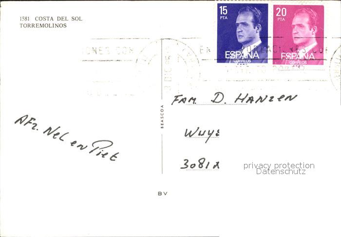 old postcard Torremolinos Strassenpartie postalisch gelaufen Erhaltung siehe scans