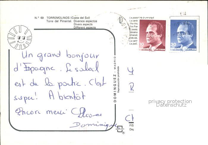 old postcard Torremolinos Torre del Pimentel postalisch gelaufen Erhaltung siehe scans
