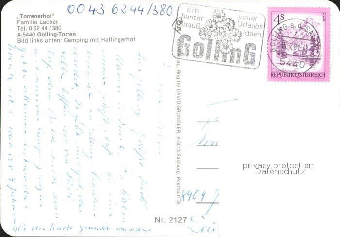 72279854 alte Postkarte Torren Golling Torrenerhof Camping Haflingerhof Alpenflora Enzian Edelweiss postalisch gelaufen Erhaltung siehe scans KatCode: 11390323050204
