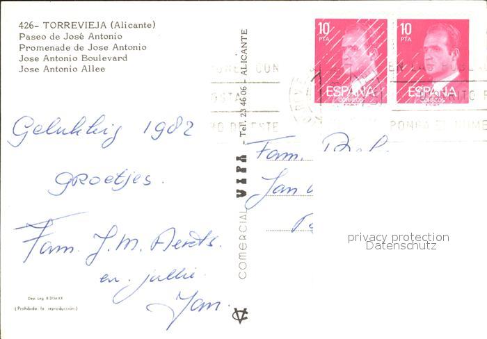 old postcard Torrevieja Paseo de Jose Antonio postalisch gelaufen Erhaltung siehe scans