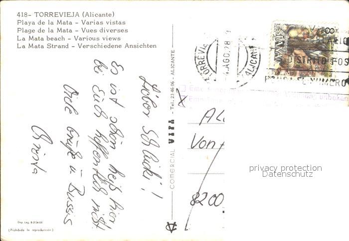 old postcard Torrevieja Playa de la Mata varias vistas postalisch gelaufen Erhaltung siehe scans