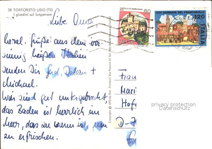 old postcard Tortoreto Lido i giardini sul lungomare postalisch gelaufen Erhaltung siehe scans