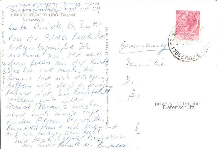 old postcard Tortoreto Lido La Spiaggia postalisch gelaufen Erhaltung siehe scans