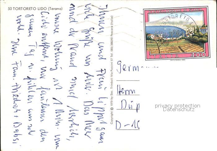 old postcard Tortoreto Lido Strassenpartien Segeln Strand postalisch gelaufen Erhaltung siehe scans