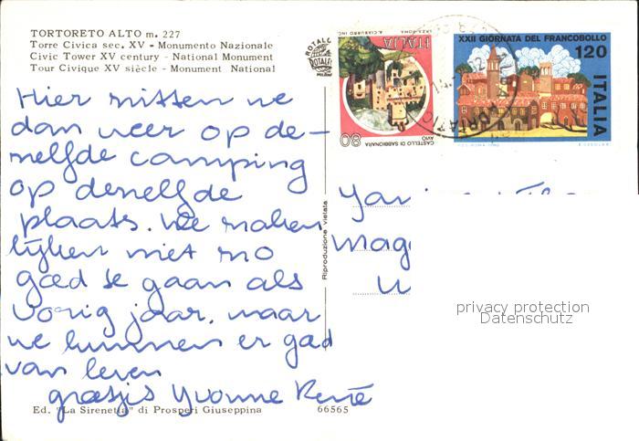 old postcard Tortoreto Lido Torre Civica Monumento Nazionale postalisch gelaufen Erhaltung siehe scans [LiesaD40]