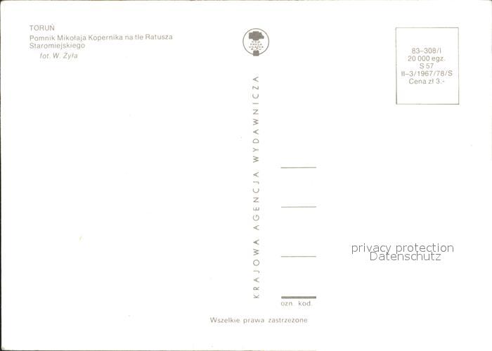 Torun Thorn Pomnik Mikolaja Kopernika Ratusza Staromiejskiego postalisch nicht gelaufen Erhaltung siehe scans