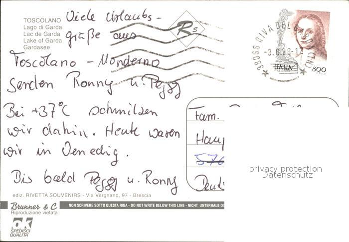 old postcard Toscolano Maderno Lago di Garda Haeuserpartie am Gardasee postalisch gelaufen Erhaltung siehe scans