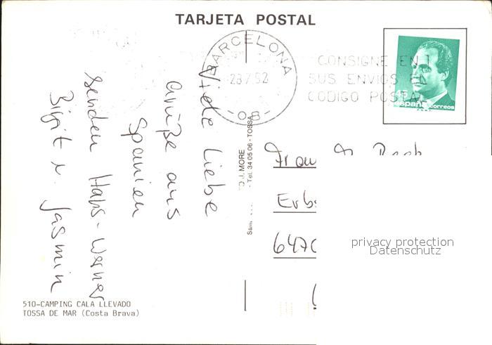 old postcard Tossa de Mar Camping Cala Llevado Strand Swimming Pool postalisch gelaufen Erhaltung siehe scans