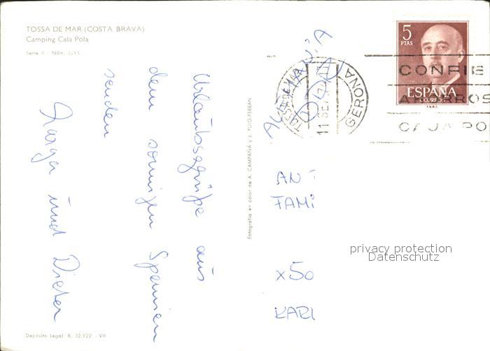 old postcard Tossa de Mar Camping Cala Pola postalisch gelaufen Erhaltung siehe scans