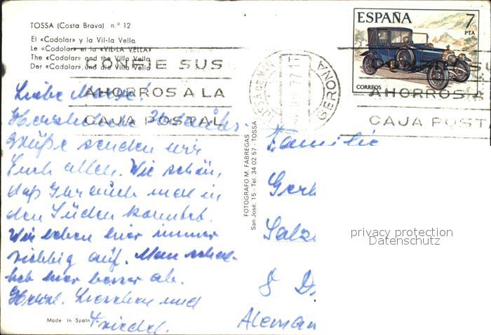 old postcard Tossa de Mar Der Codolar postalisch gelaufen Erhaltung siehe scans