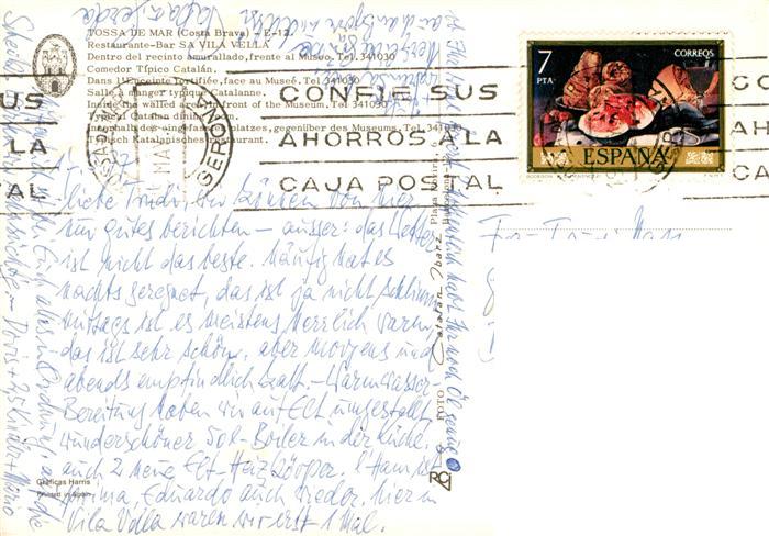 73905564 old postcard Tossa de Mar ES Restorante Bar Sa Vila Vella postalisch gelaufen Erhaltung siehe scans [WerneD78] KatCode: 11510
