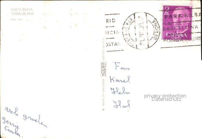 old postcard Tossa de Mar Fliegeraufnahme mit Strand postalisch gelaufen Erhaltung siehe scans