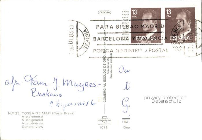 old postcard Tossa de Mar Gesamtansicht postalisch gelaufen Erhaltung siehe scans