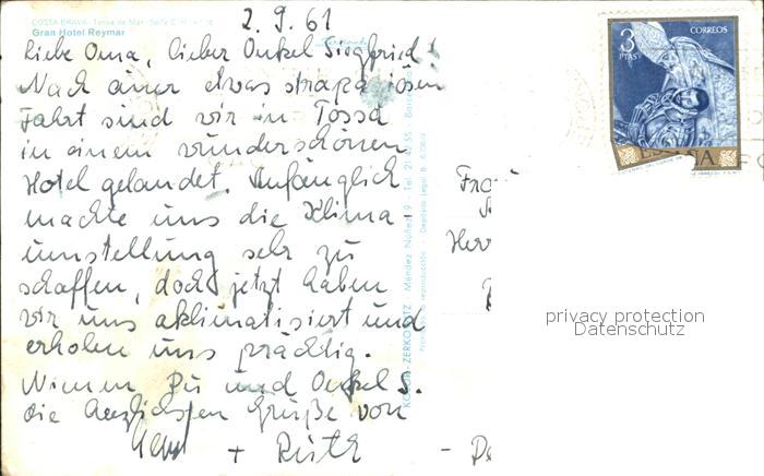 old postcard Tossa de Mar Gran Hotel Reymar postalisch gelaufen Erhaltung siehe scans