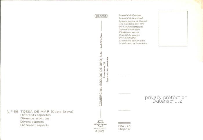 Tossa de Mar Hotel Burg postalisch nicht gelaufen Erhaltung siehe scans