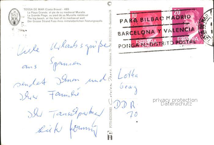 old postcard Tossa de Mar La Playa Grande al pie de su medieval Muralla postalisch gelaufen Erhaltung siehe scans