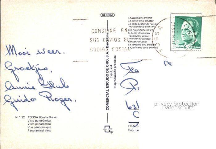 old postcard Tossa de Mar Panorama postalisch gelaufen Erhaltung siehe scans [KathaD79]
