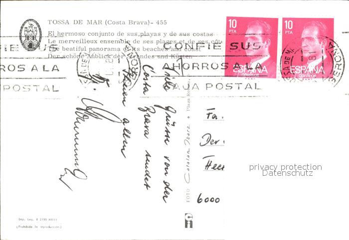 old postcard Tossa de Mar Panorama Kueste postalisch gelaufen Erhaltung siehe scans