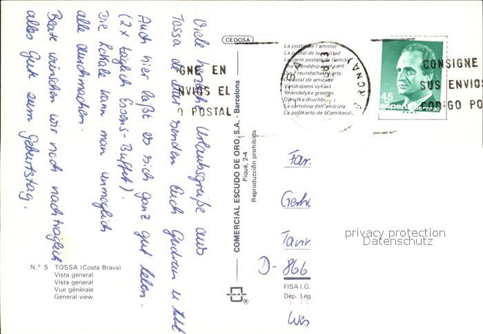 old postcard Tossa de Mar Vista general postalisch gelaufen Erhaltung siehe scans