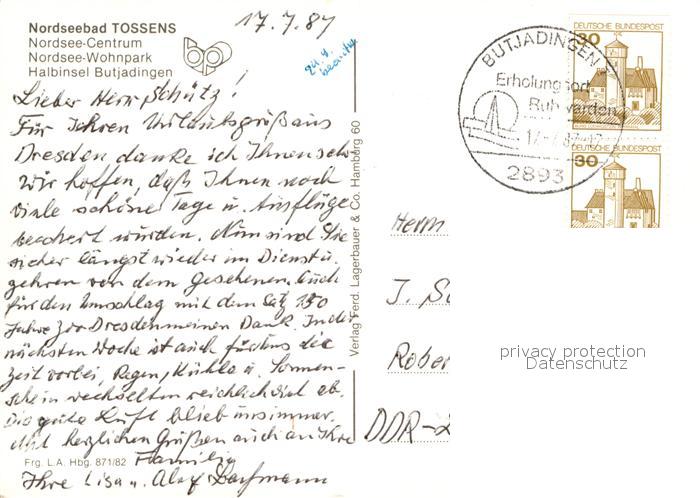 72987690 alte Postkarte Tossens Nordseebad Fliegeraufnahme Wohnpark Halbinsel Butjadingen postalisch gelaufen Erhaltung siehe scans [LiesaD40] KatCode: 11110003461003