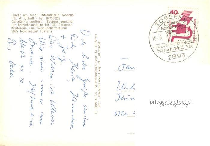 73070621 alte Postkarte Tossens Nordseebad Strandhalle Campingplatz Strand Fliegeraufnahme postalisch gelaufen Erhaltung siehe scans [FriedD77] KatCode: 11110003461003