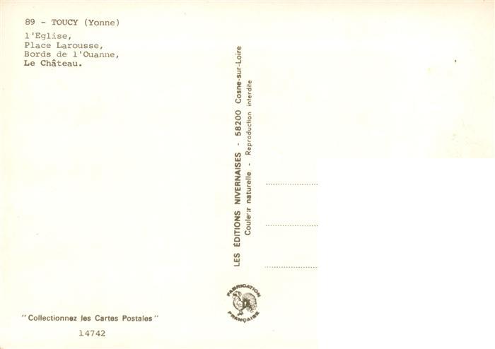 13945158 Toucy 89 Yonne Eglise Place Larousse Bords de l’Ouanne Château postalisch nicht gelaufen Erhaltung siehe scans [FriedD77] Frie Katcode 11170089189419