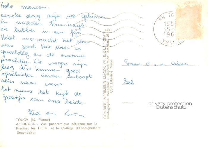 13045163 carte postale Toucy Fliegeraufnahme Piscine postalisch gelaufen Erhaltung siehe scans [NatalD47] KatCode: 11170089189419
