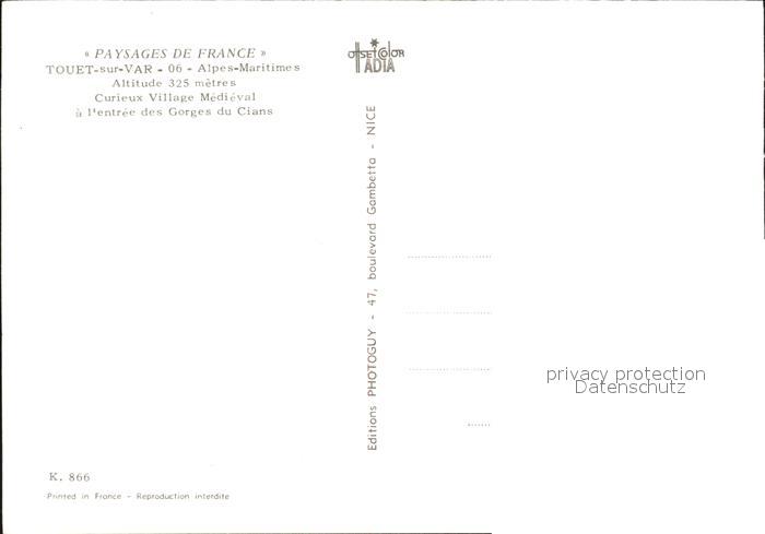 12486132 Touet-sur-Var postalisch nicht gelaufen Erhaltung siehe scans KatCode: 11170006206143