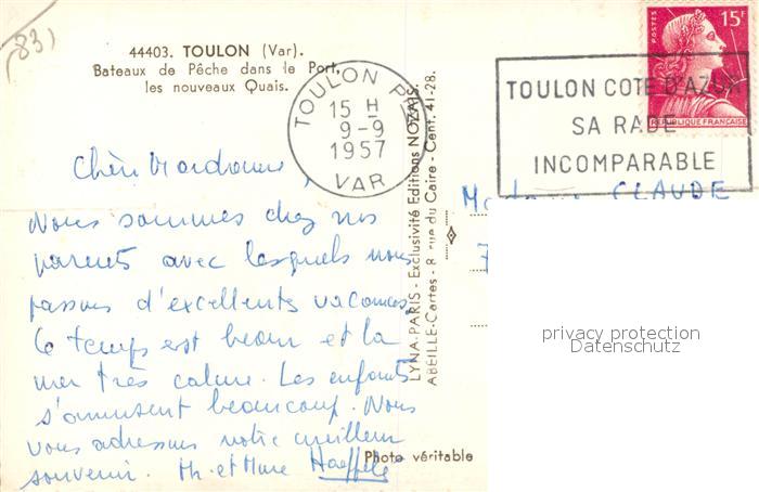 13533553 carte postale Toulon Var Bateaux de Pêche dans le port et les nouveaux quais postalisch gelaufen Erhaltung siehe scans [FriedD77] KatCode: 11170083283137