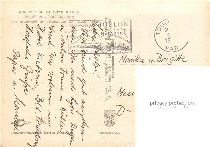12603891 carte postale Toulon Var Fliegeraufnahme Strassenpartie postalisch gelaufen Erhaltung siehe scans [LiesaD40] KatCode: 11170083283137