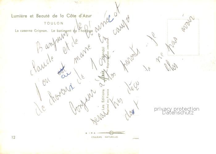 13593996 Toulon Var La caserne Grignan Le batiment de l Horloge postalisch nicht gelaufen Erhaltung siehe scans [WerneD78] Wern Katcode 11170083283137