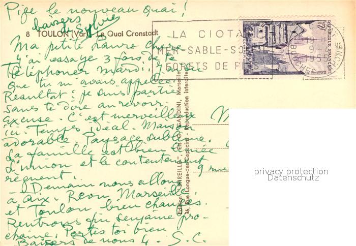 13237329 carte postale Toulon Var Le Quai Cronstadt Bateaux postalisch gelaufen Erhaltung siehe scans [FriedD77] KatCode: 11170083283137