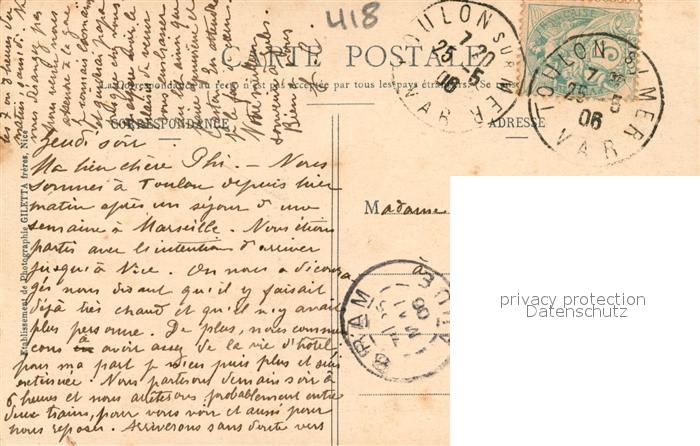 13549394 carte postale Toulon Var Place de la Liberte Grand Hotel postalisch gelaufen Erhaltung siehe scans [PaolaD17] KatCode: 11170083283137