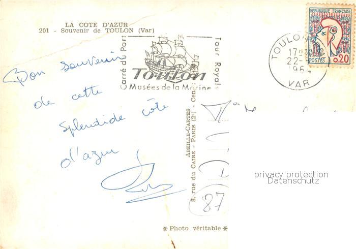 13775553 Toulon Var Springbrunnen Hafen Gondel postalisch gelaufen Erhaltung siehe scans [LiesaD40] carte postale Lies Katcode 11170083283137