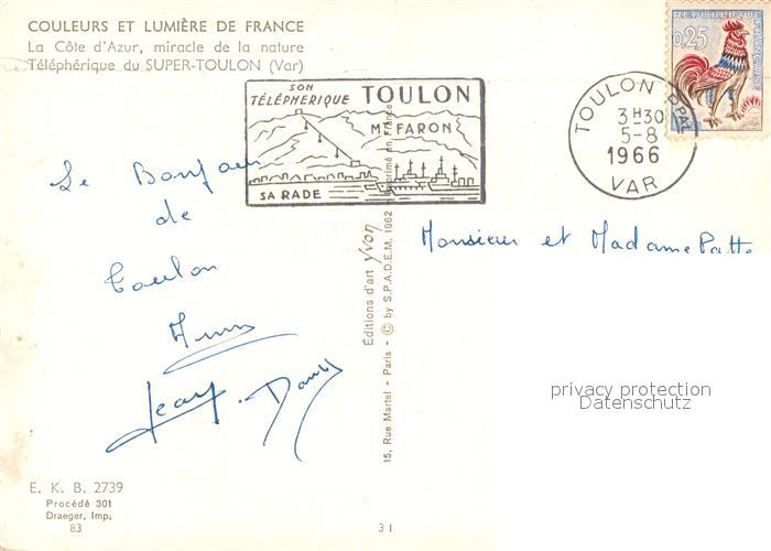 13579002 carte postale Toulon Var Téléphérique du Super Toulon Côte d Azur postalisch gelaufen Erhaltung siehe scans [FriedD77] KatCode: 11170083283137