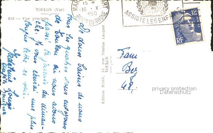 11903017 carte postale Toulon Var Vue generale aerienne postalisch gelaufen Erhaltung siehe scans KatCode: 11170083283137