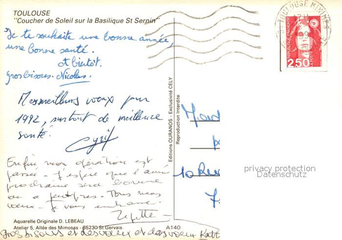 13512725 Toulouse Haute-Garonne Basilique Saint Serpin Künstllerkarte KatCode 11170031331555