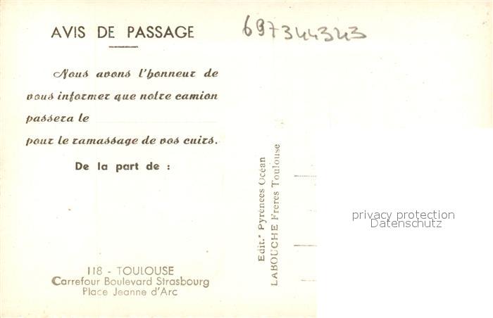 13579684 Toulouse Haute-Garonne Carrefour Boulevard Strasbourg Place Jeanne d Arc postalisch nicht gelaufen Erhaltung siehe scans [WerneD78] KatCode: 11170031331555