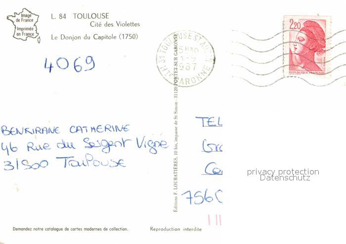12919557 carte postale Toulouse Haute-Garonne Cite des Violettes Fleurs Donjon du Capitole postalisch gelaufen Erhaltung siehe scans [FriedD77] KatCode: 11170031331555