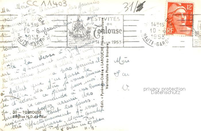 13535336 carte postale Toulouse Haute-Garonne Eglise Notre Dame du Tour postalisch gelaufen Erhaltung siehe scans [FriedD77] KatCode: 11170031331555