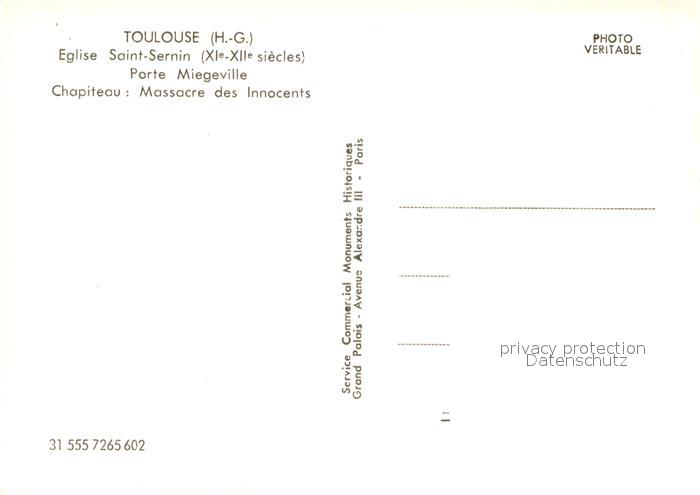 12941498 Toulouse Haute-Garonne Eglise Saint-Sernin Porte Miegeville postalisch nicht gelaufen Erhaltung siehe scans [PaolaD17] KatCode: 11170031331555