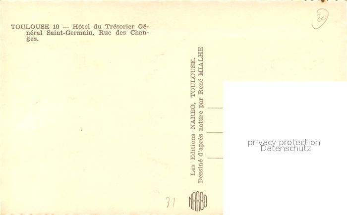 13499861 Toulouse Haute-Garonne Hotel du Tr?sorier G?n?ral Saint Germain Rue des Changes Zeichnung postalisch nicht gelaufen Erhaltung siehe scans [LiesaD40] KatCode: 11170031331555