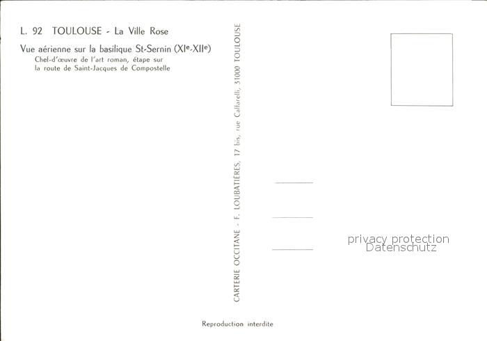 12503569 Toulouse Haute-Garonne La Ville Rose Vue aerienne sur la basilique St Sernin postalisch nicht gelaufen Erhaltung siehe scans KatCode: 11170031331555