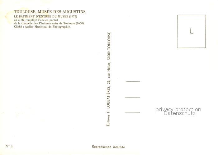 12951023 Toulouse Haute-Garonne Musee des Augustins postalisch nicht gelaufen Erhaltung siehe scans [WerneD78] KatCode: 11170031331555