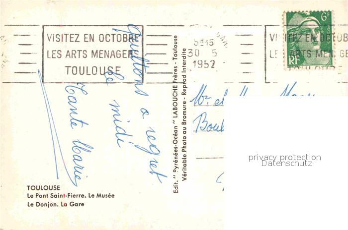 12838442 carte postale Toulouse Haute-Garonne Pont Saint Pierre Musee Donjon Gare postalisch gelaufen Erhaltung siehe scans [FriedD77] KatCode: 11170031331555
