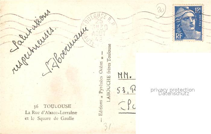 13499864 carte postale Toulouse Haute-Garonne Rue d`Alsace Lorraine et le Square de Gaulle postalisch gelaufen Erhaltung siehe scans [LiesaD40] KatCode: 11170031331555