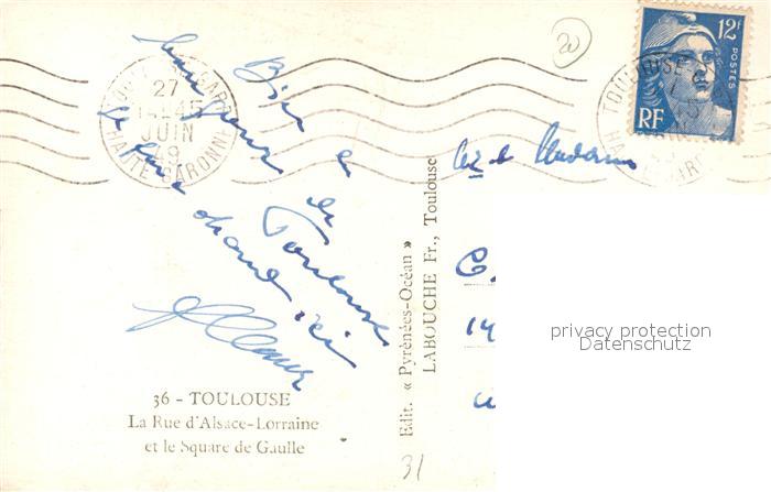 13499805 carte postale Toulouse Haute-Garonne Rue d`Alsace Lorraine postalisch gelaufen Erhaltung siehe scans [LiesaD40] KatCode: 11170031331555