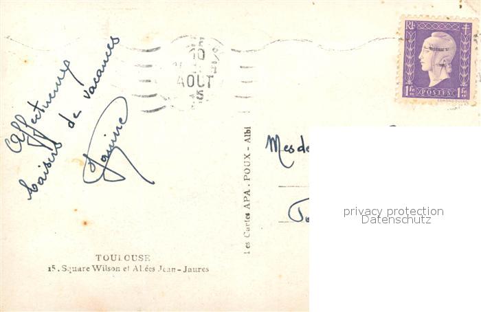 13571744 carte postale Toulouse Haute-Garonne Square Wilson et Allees Jean Jaures postalisch gelaufen Erhaltung siehe scans [LiesaD40] KatCode: 11170031331555