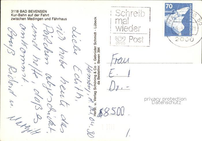alte Postkarte Touristenzug Kur-Bahn Bad Bevensen postalisch gelaufen Erhaltung siehe scans [PaolaD17 kt110box]
