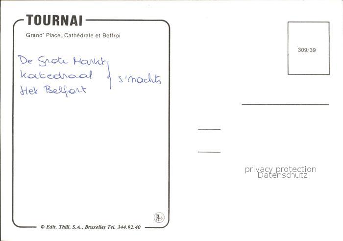 72234078 Tournai Hainaut Grand Place Cathedrale et Beffroi postalisch nicht gelaufen Erhaltung siehe scans KatCode: 11070057000135